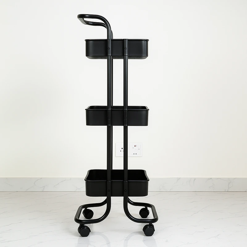 র্যাকটির চারটি চাকা এটিকে সহজেই এক স্থান থেকে অন্য স্থানে স্থানান্তরযোগ্য করে তোলে, যা একে করে তোলে অত্যন্ত সুবিধাজনক। ছোট ডিজাইন হলেও এটি অনেক জায়গা সাশ্রয় করে এবং ভারি জিনিস রাখার জন্যও যথেষ্ট মজবুত। সাধারণত এটি মেটাল বা স্টেইনলেস স্টিল দিয়ে তৈরি হওয়ায় এটি দীর্ঘস্থায়ী ও টেকসই।এটি শুধু কার্যকরই নয়, বরং এর স্টাইলিশ ও আধুনিক ডিজাইন আপনার ঘরের সৌন্দর্যও বাড়িয়ে তুলবে। নিয়মিত পরিষ্কারে এটি দীর্ঘদিন ধরে নতুনের মতো থাকে। এই ট্রলি র্যাকটি দৈনন্দিন ব্যবহারের জন্য একটি অনন্য সমাধান।