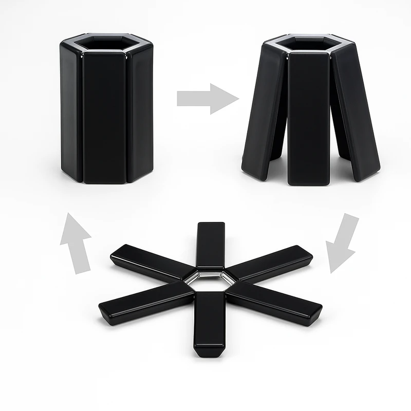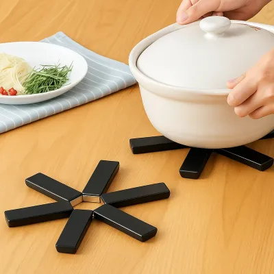 ফোল্ডিং পট ম্যাট একটি আধুনিক ও কার্যকর গৃহস্থালী উপকরণ, যা গরম পাত্র, হাঁড়ি, ফ্রাইপ্যান ইত্যাদি রাখার জন্য ব্যবহৃত হয়। উচ্চ তাপ প্রতিরোধী এই ম্যাটটি ভাঁজযোগ্য ডিজাইন হওয়ায় জায়গা কম নেয় এবং সংরক্ষণে সুবিধা হয়।