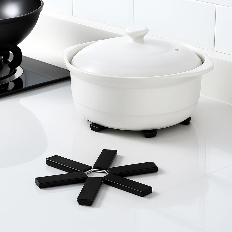 এর ছয়টি বাহু গরম পাত্রকে ভালোভাবে সমর্থন দেয় এবং টেবিল বা রান্নাঘরের কাউন্টারকে তাপজনিত ক্ষতি থেকে রক্ষা করে। স্টাইলিশ ডিজাইনের কারণে এটি কিচেন ডেকোরেশনেও মানানসই।