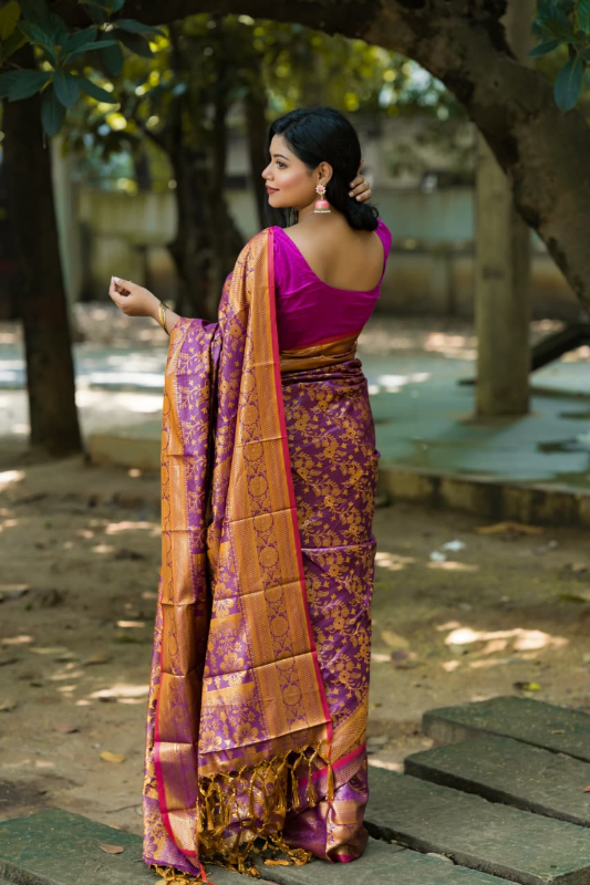 শাড়িটির রয়্যাল ব্লু এবং ডিপ মেরজেন্টা কালার কম্বিনেশন অত্যন্ত মার্জিত ও অভিজাত, যা যেকোনো উৎসব বা অনুষ্ঠানে আপনাকে দেবে এক অনন্য ও আত্মবিশ্বাসী লুক। সাথে থাকা ম্যাচিং কাজের ব্লাউজ পিস দিয়ে আপনি আপনার পছন্দমতো ডিজাইনে ব্লাউজ তৈরি করে পুরো সাজে পূর্ণতা আনতে পারবেন। বিয়ে, রিসেপশন, উৎসব কিংবা যেকোনো পারিবারিক অনুষ্ঠানে যারা আভিজাত্যের সাথে আরামের খোঁজ করেন, তাদের জন্য এটি একটি পারফেক্ট চয়েস।
