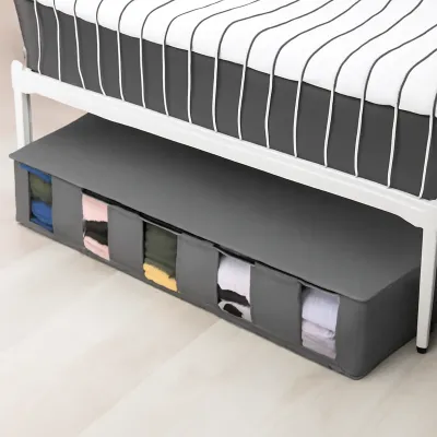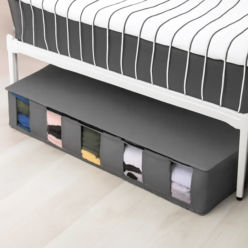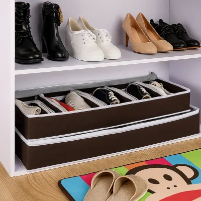 পোর্টেবল ফোল্ডিং আন্ডার বেড শু অর্গানাইজার একটি আধুনিক এবং কমপ্যাক্ট সমাধান, যা আপনার শু এবং অন্যান্য সামগ্রী সুন্দরভাবে গুছিয়ে রাখতে সহায়ক। এটি আপনার বেডের নিচে সোজা বা ভাঁজ করা যায় এবং খুব সহজেই স্থান বাঁচায়।