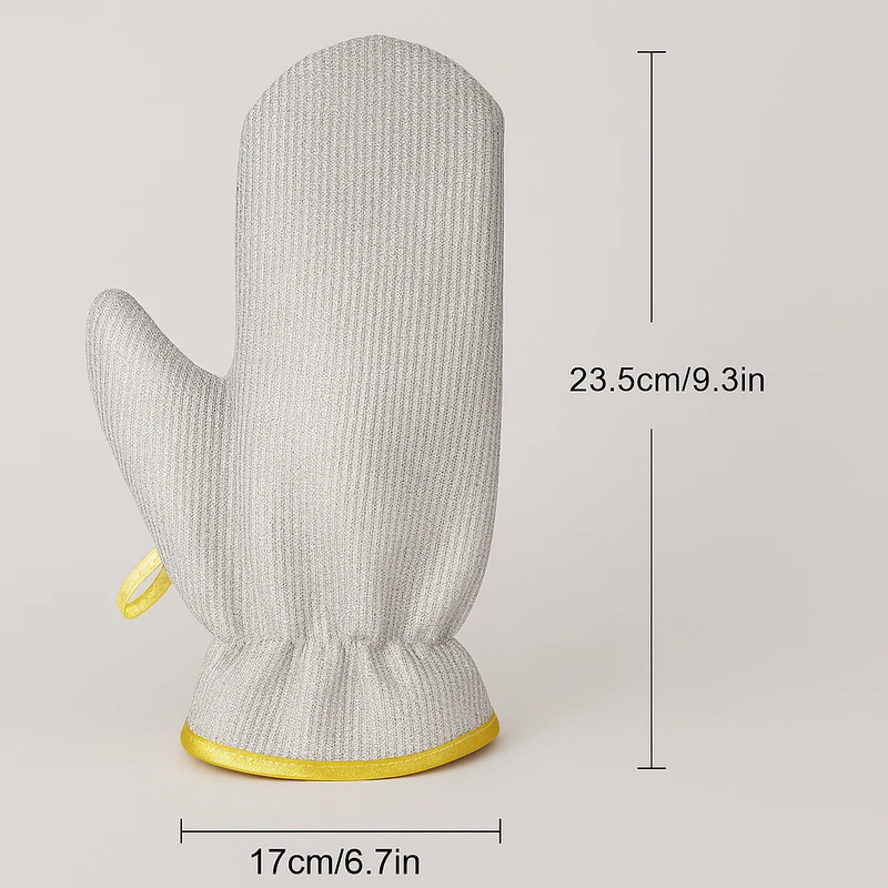 ওয়াটারপ্রুফ ডিশওয়াশিং গ্লাভস একটি কার্যকরী গৃহস্থালী উপাদান যা বাসনপত্র পরিষ্কারের সময় আপনার হাতকে সুরক্ষা দেয়। গ্লাভসটি তৈরি হয়েছে উচ্চমানের রাবার বা সিলিকন জাতীয় উপাদানে, যা গরম পানি, সাবান, ডিটারজেন্ট বা ক্ষতিকর রাসায়নিক থেকে ত্বককে রক্ষা করে।